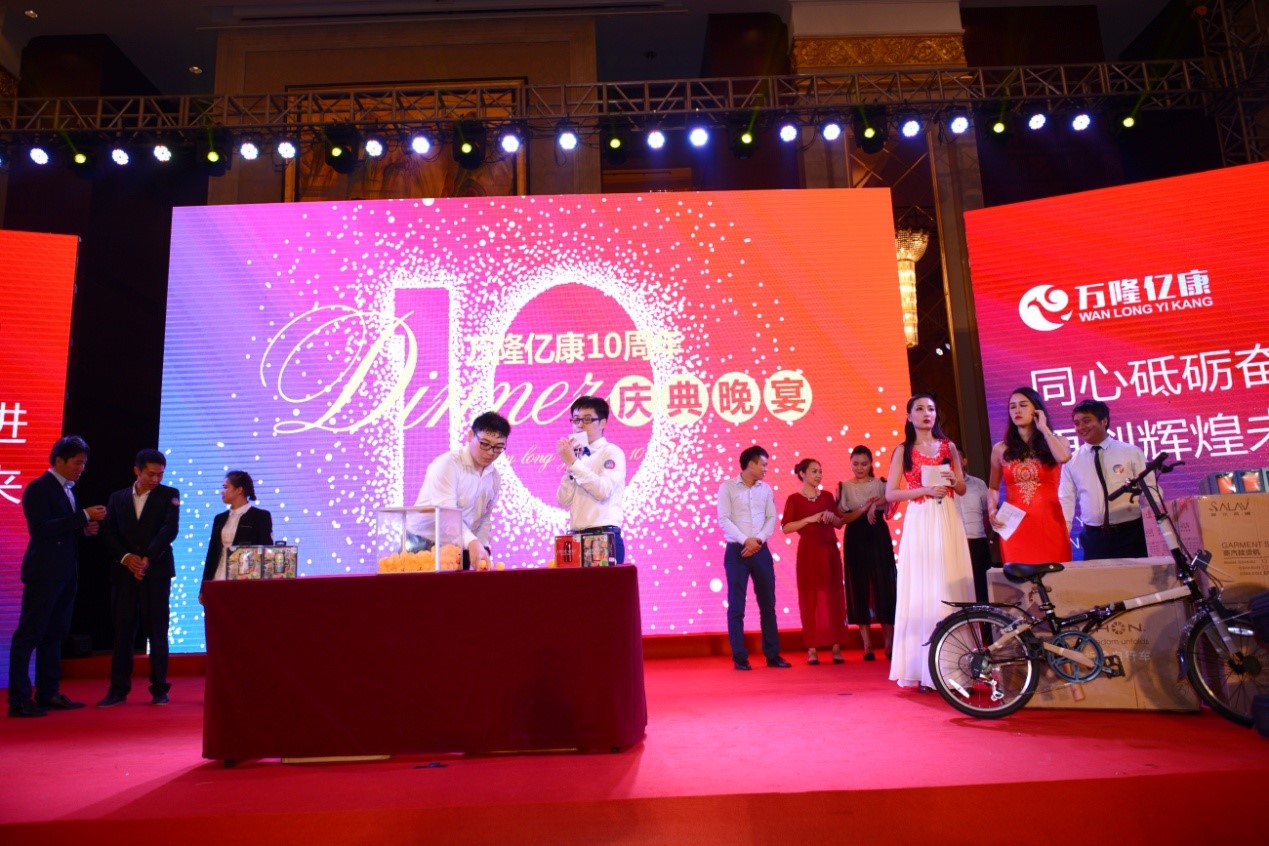 10月23日,成都萬隆億康醫(yī)藥有限公司十周年慶典在彭山恒大酒店盛大舉行。包括成都萬隆億康醫(yī)藥有限公司、成都萬河源科技有限公司、成都萬隆億康醫(yī)療器械有限公司、四川禾億制藥有限公司、四川欣億康藥業(yè)有限公司在內(nèi)的近200名員工一起分享了萬隆億康十年來的風(fēng)雨與陽光、喜悅與精彩。