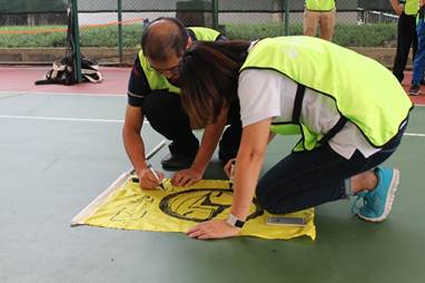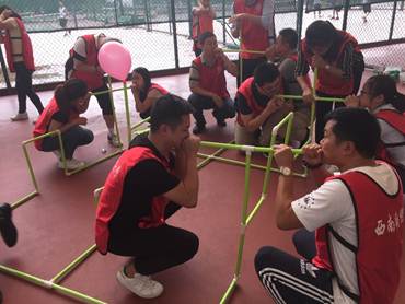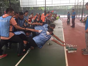 下午兩點(diǎn)至五點(diǎn),全體參訓(xùn)人員在網(wǎng)球場(chǎng)進(jìn)行了拓展訓(xùn)練,70余人分成四組,分別完成了三個(gè)項(xiàng)目:神龍取水、一鼓作氣和鼓動(dòng)人心。由于此次參訓(xùn)的同事來(lái)自四川人福各部門(mén)及各分子公司,拓展培訓(xùn)讓平時(shí)接觸不多且比較陌生的同事們快速地融入在了一起。